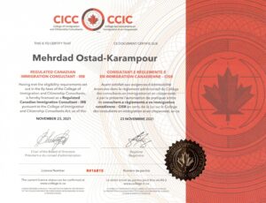I am Mehrdad Ostad-Karampour, a Regulated Canadian Immigration and Refugee Consultant (RCIC – IRB), registration number R416815. With more than 20 years of professional experience in immigration, study, work, refugee, and investment applications, I am dedicated to providing accurate, ethical, and effective immigration guidance.
